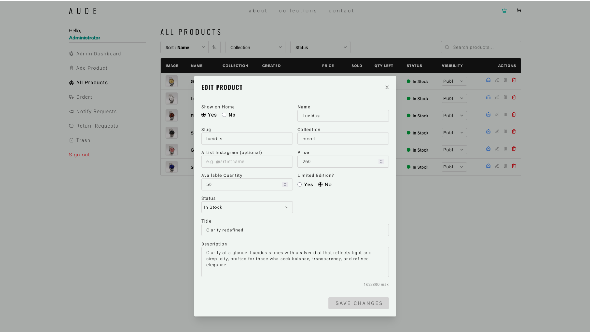 To run AUDE as a real business, I designed and built a custom admin CMS to manage products, content, and operations without touching the database directly.