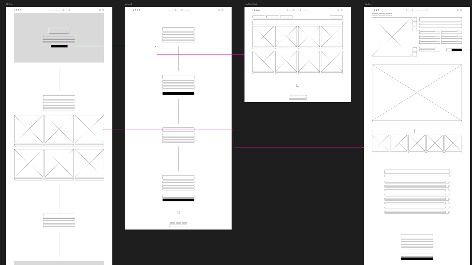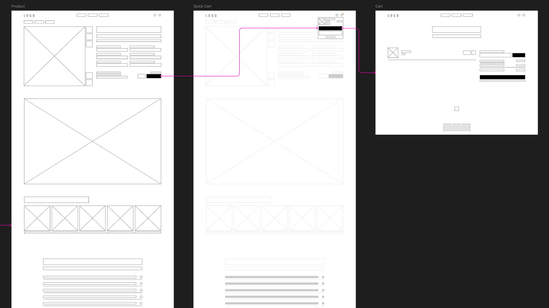 Wireframes were used to define layout logic, hierarchy, and reusable component structure across the platform.