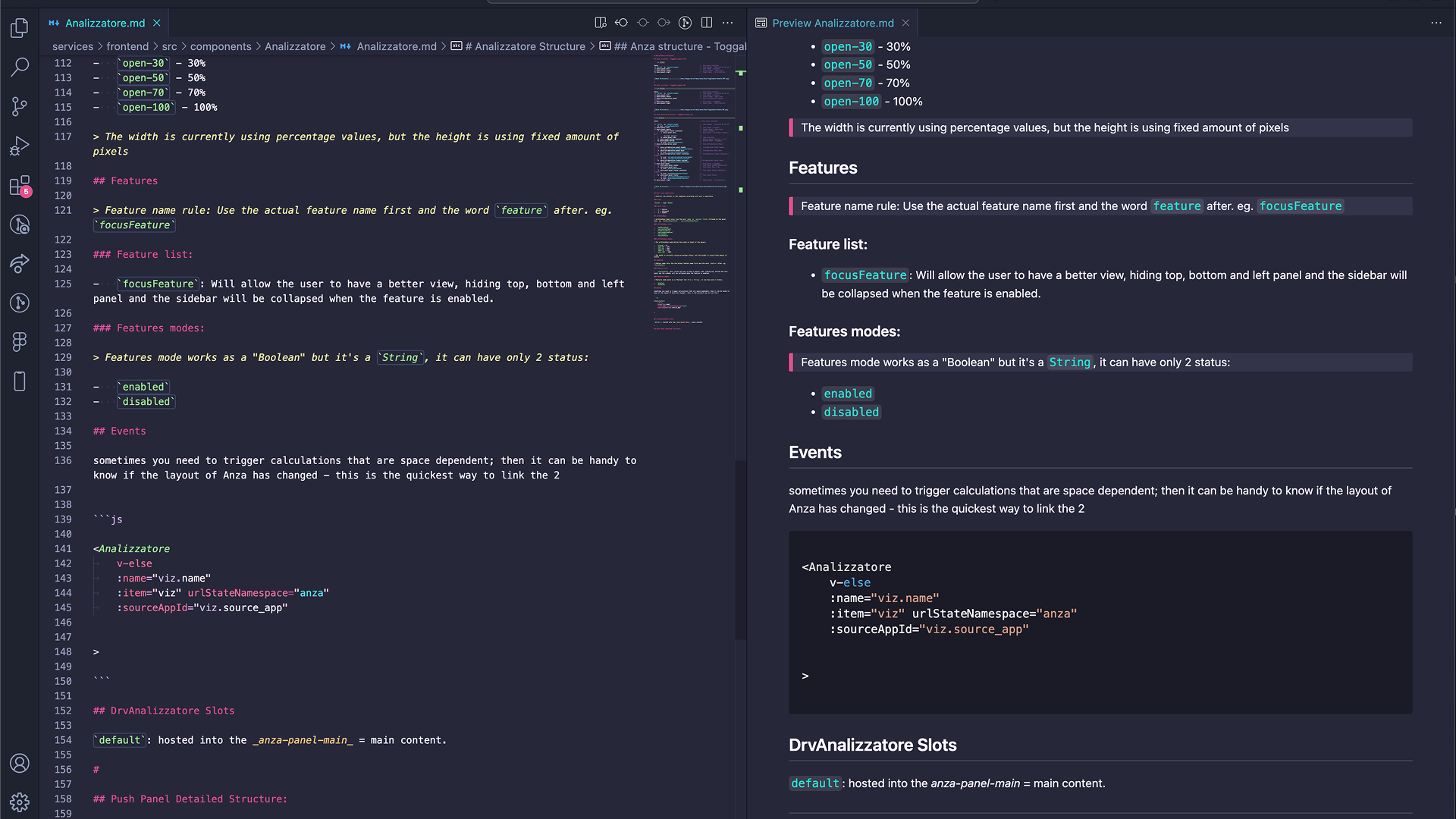 Internally we nicknamed this framework Analizzatore (Italian for “Analyzer”). It defined a reusable analytics workspace that could be reused across different apps by swapping data, tools, and panels, without rebuilding the layout and interaction model every time.