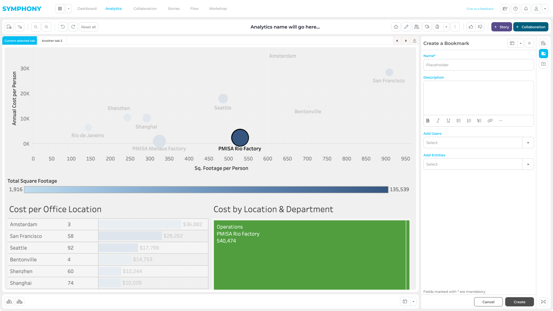 Symphony provides a shared environment where users can create bookmarks, add annotations, and collaborate with internal or external stakeholders.